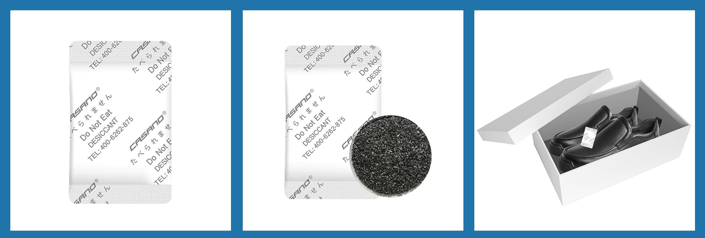 · CASANO Deodorizing Desiccant are commonly used inside shoe and clothing packaging. They effectively adsorb volatile organic compounds (VOCs) in the environment, demonstrating excellent removal capabilities for harmful substances and odors in the air, including benzene compounds (dibenzene, triphenyl), formaldehyde, phenol, ammonia, and others.