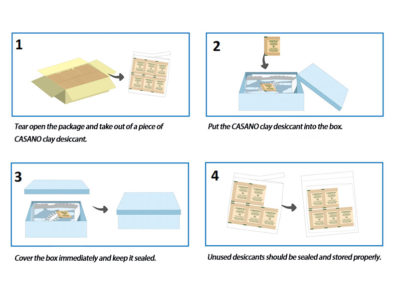 · CASANO clay desiccant is commonly used in electronics, metals, food, pharmaceuticals, footwear and luggage, and other fields requiring moisture-proof and drying solutions.